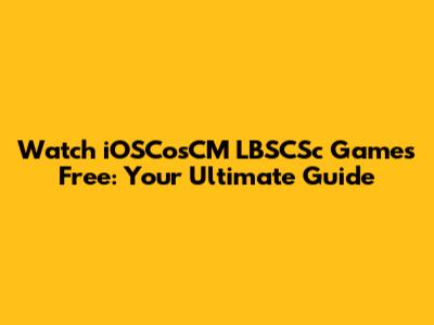 Watch IOSCosCM LBSCSc Games Free: Your Ultimate Guide